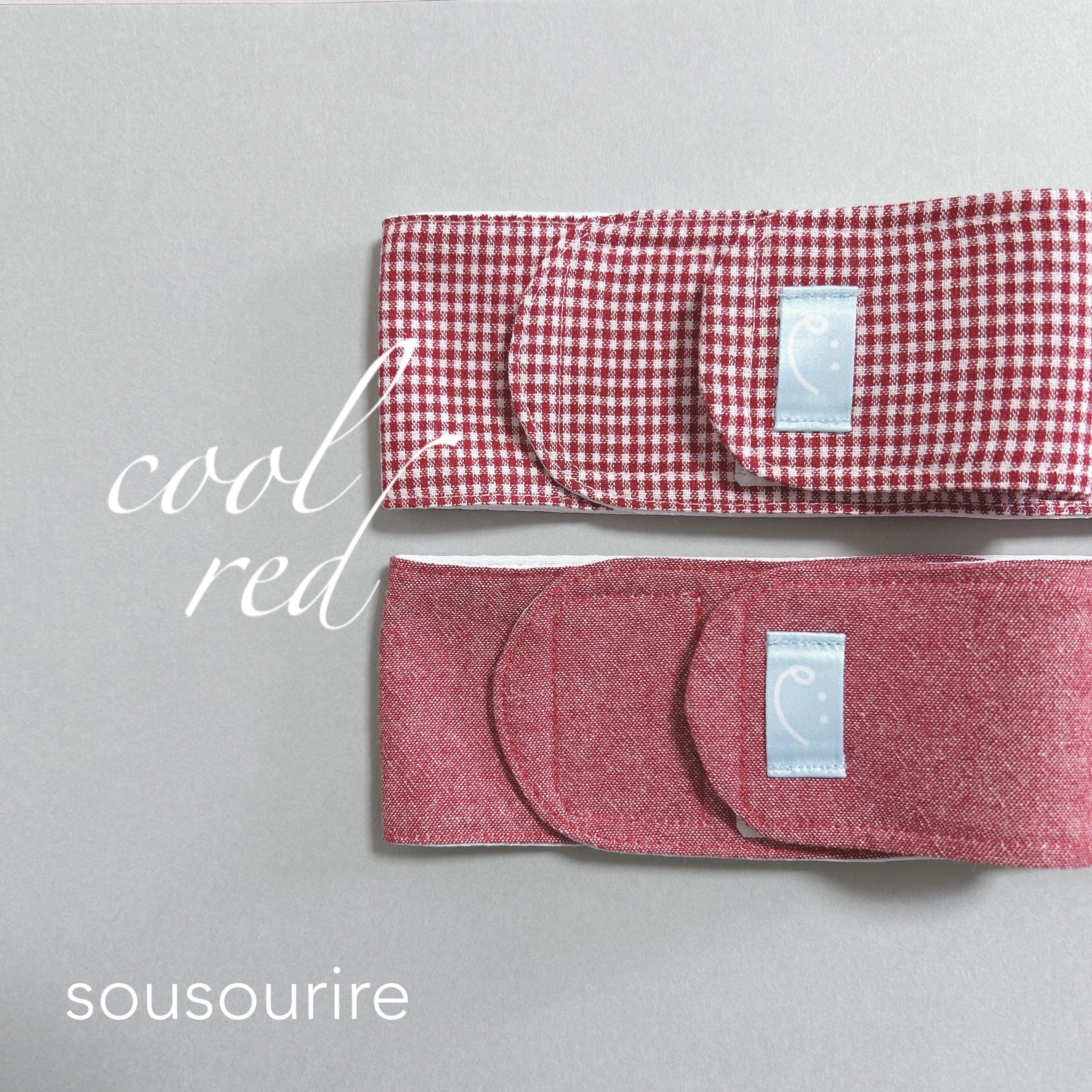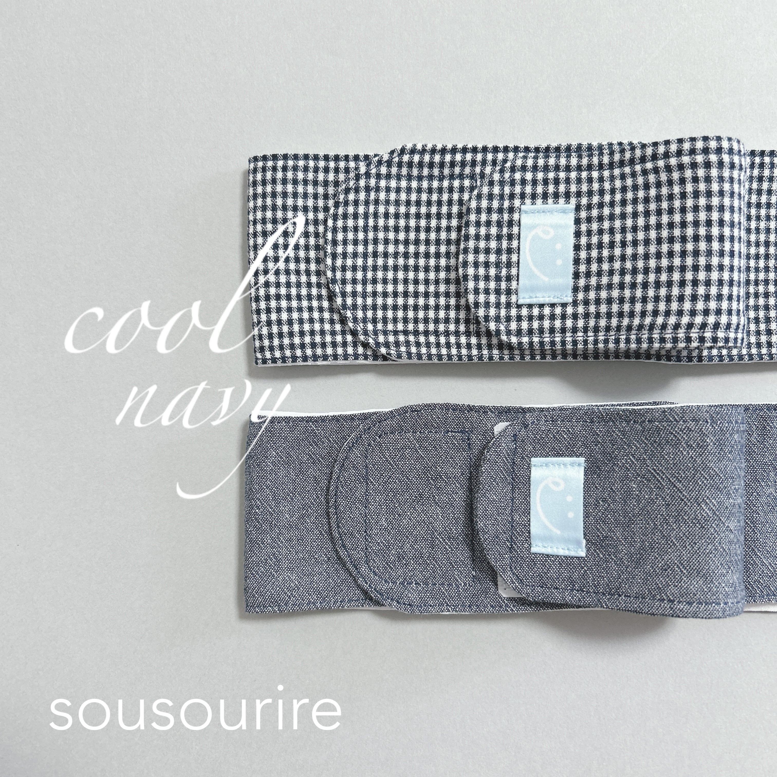 ナチュラルな質感の混紡素材と、裏面には接触冷感素材クールセンサーを使った回路固定ベルトです。