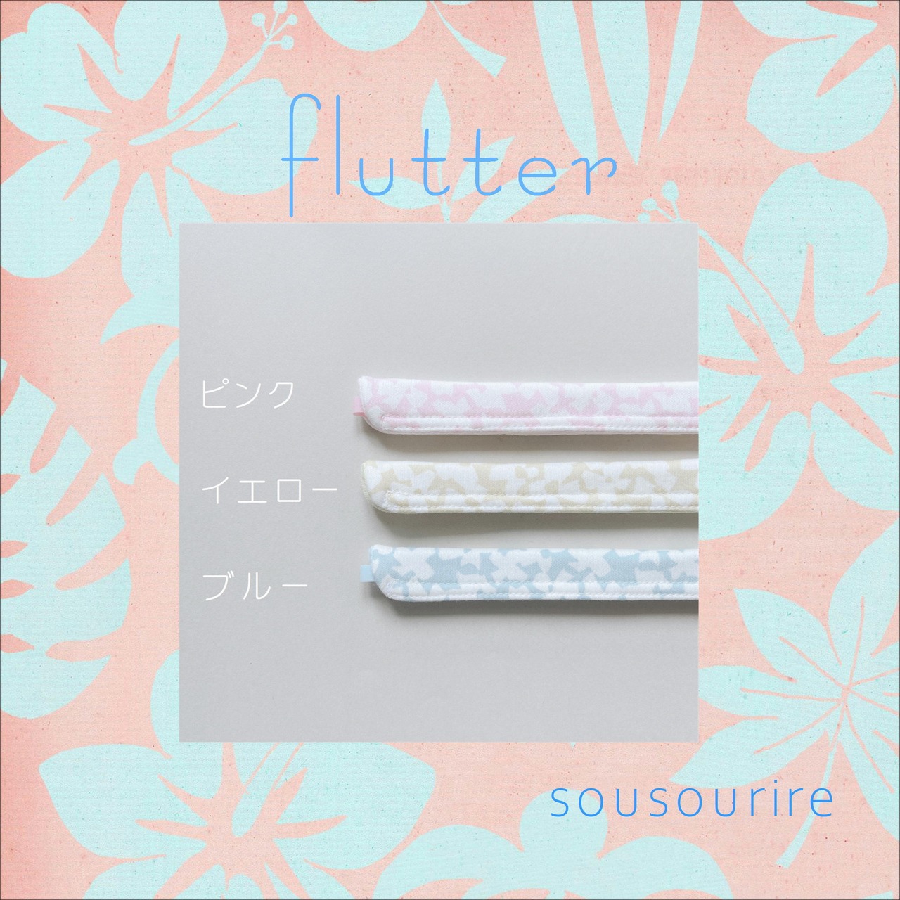 flutterひらひら舞うお花や鳥のようなかわいい色柄のカニューレバンドです。