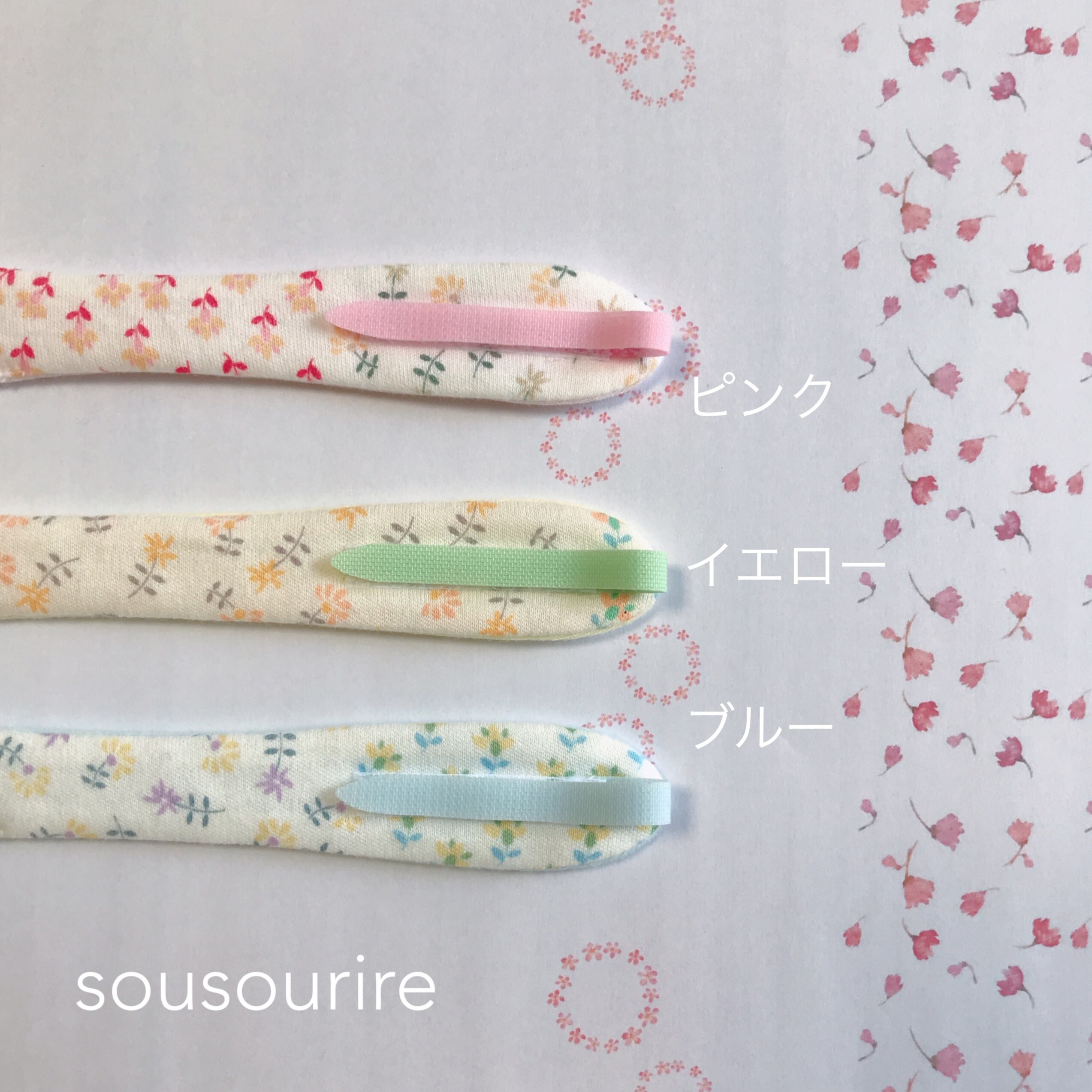 やさしいカラーに小さなdaisyがかわいいカニューレバンドです。