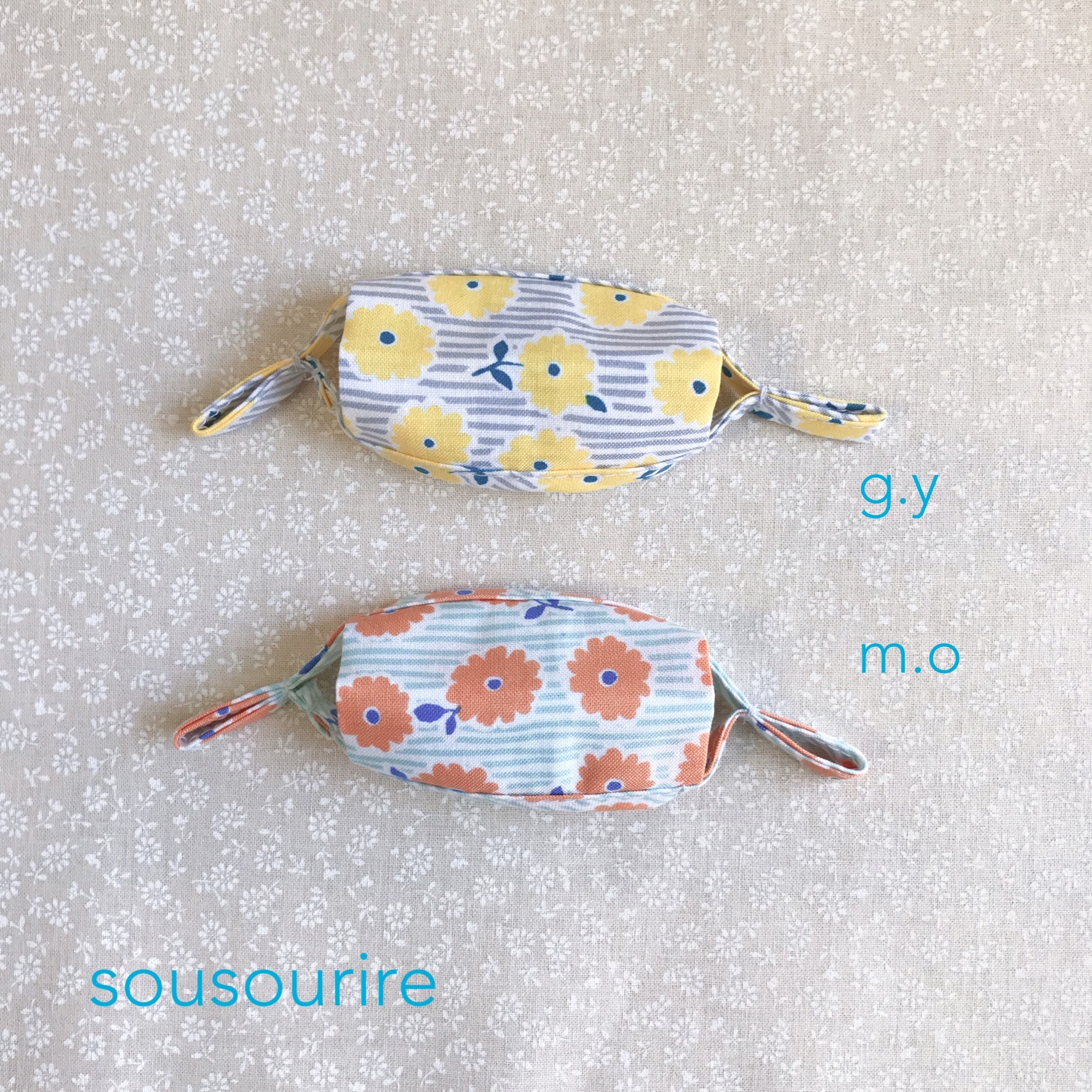 ボーダーに爽やかなレモンイエローとオレンジのフラワー柄が