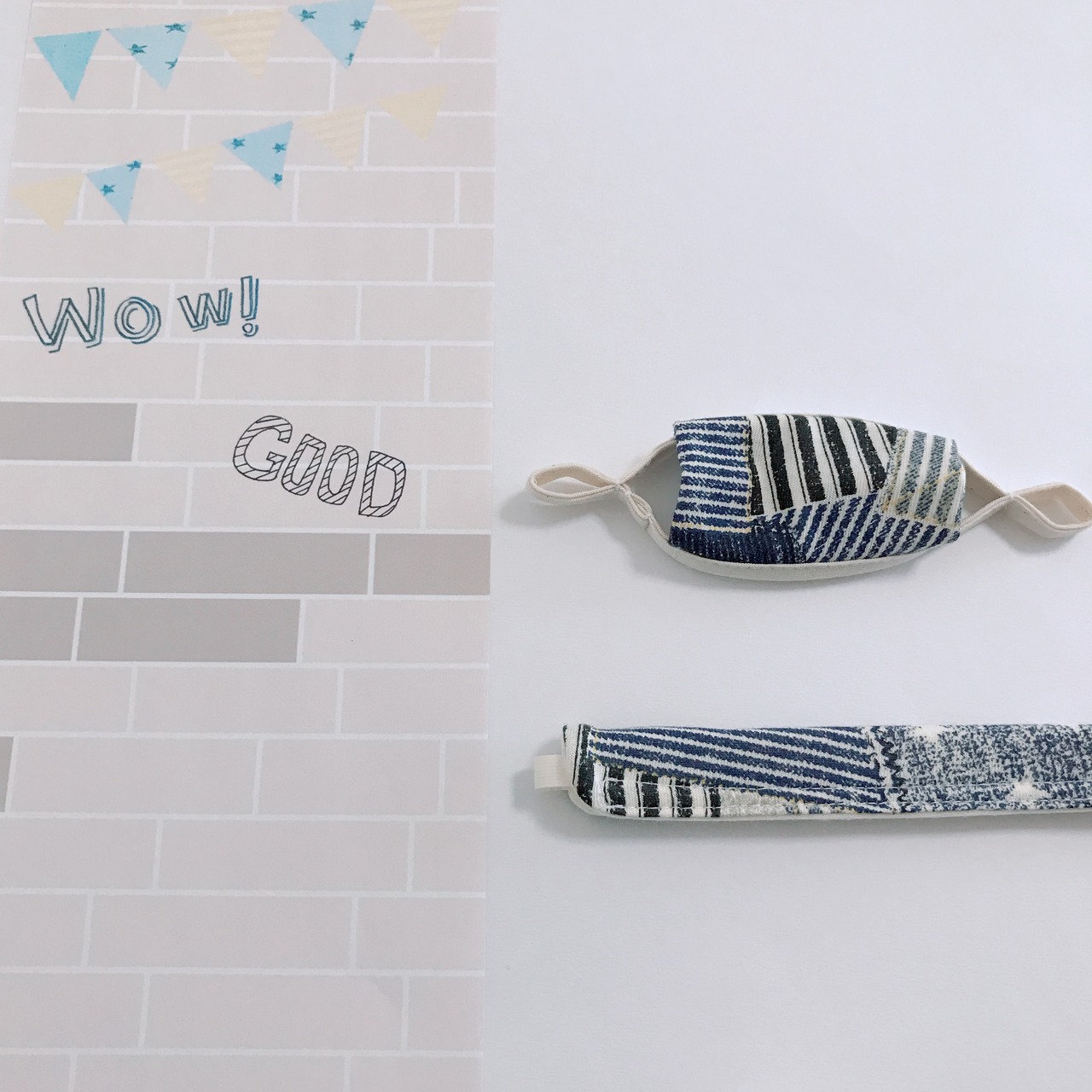 デニム柄のやわらかい天竺生地とスムース生地を使ったカニューレバンドです。