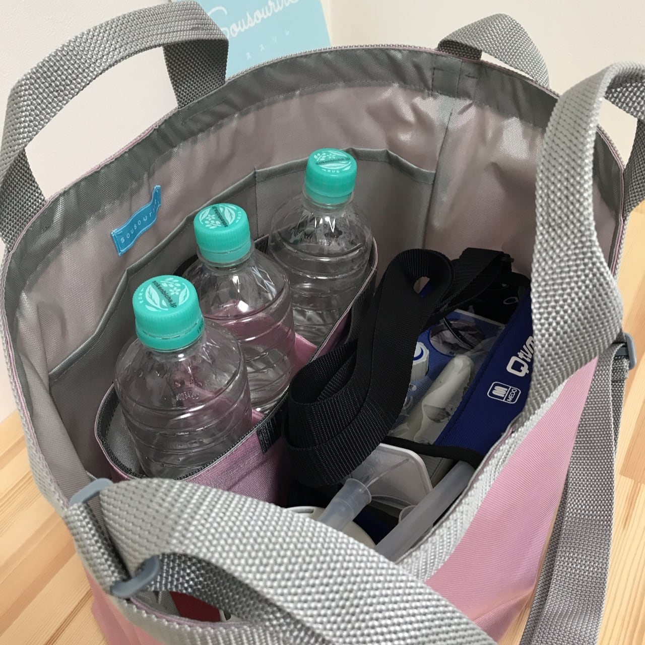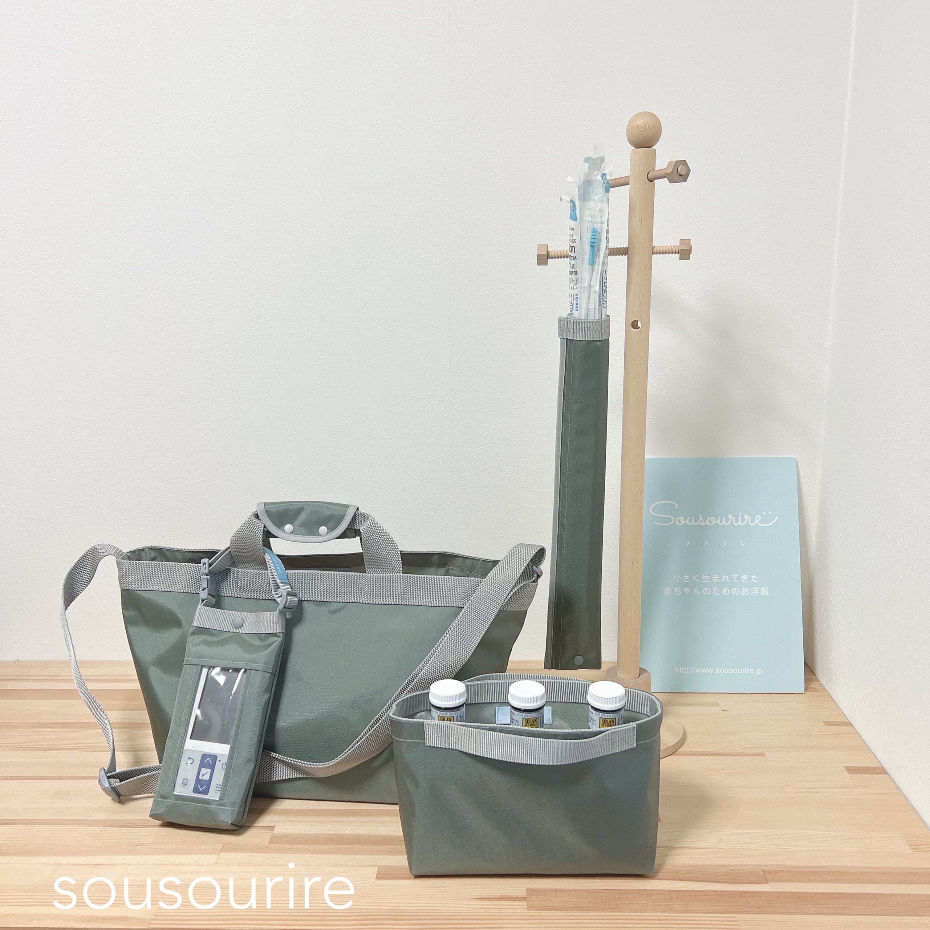 吸引器や消毒用ボトルの収納に便利なナイロントートバッグです。