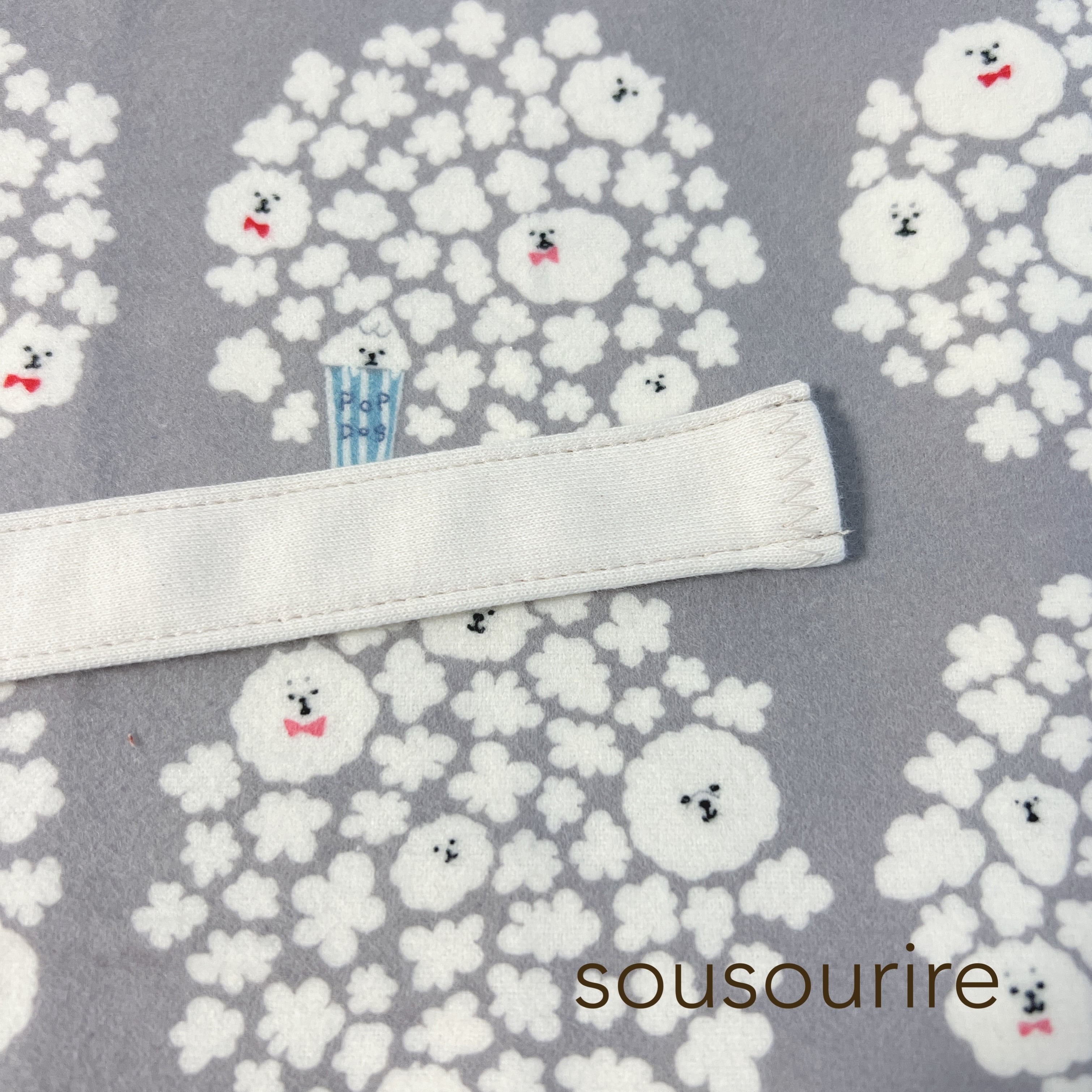 スムース生地を使って幅2㎝の筒状に仕上げています。(幅のご希望のサイズに変更できます。)